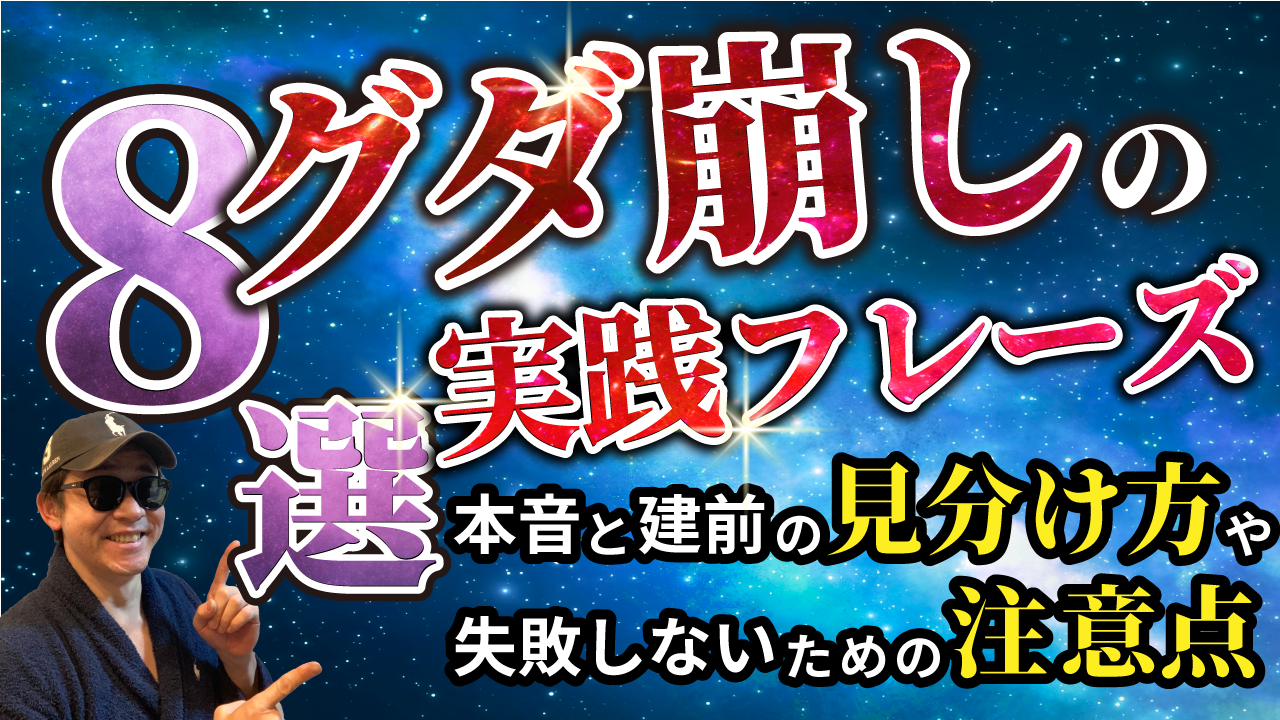 しかし、この記事で紹介したように、女性には本音と建前があり、その心理を読み解き、状況に応じて適切な言葉を選べば「グダ崩し」は可能です。